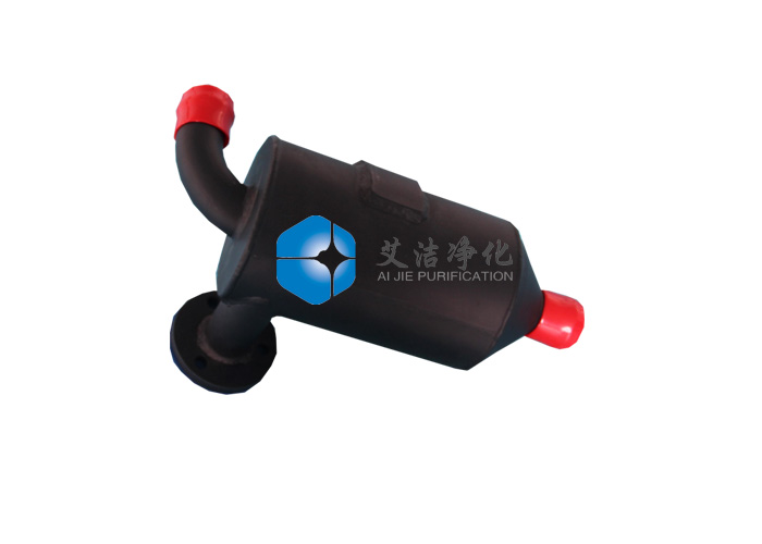 艾潔凈化生產的旋風式油氣分離器是讓氣液混合氣經過切向進氣道或是螺旋進氣道進入分離器內,使混合氣在分離器內旋轉運動,以此產生離心力來實現油滴的分離,它的分離機理與主動離心式油氣分離器相同,只是不需外界提供動力。